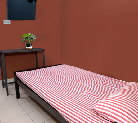 Built for a comfortable double occupancy, you'll find these rooms spacious and tidy. These well-lit rooms have a large twin bed, cable TV, desk, attached bathroom and a toilet. The decor is bright and cheerful.